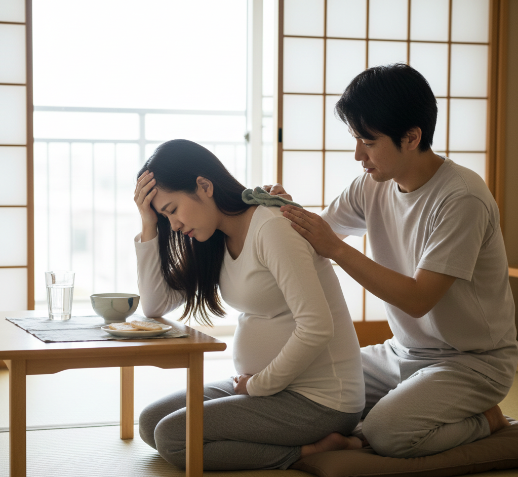 私も妊娠3ヶ月のとき、つわりで起き上がるのもやっとなのに、